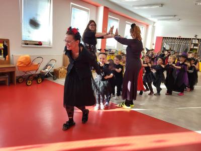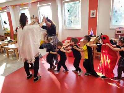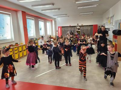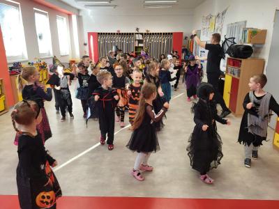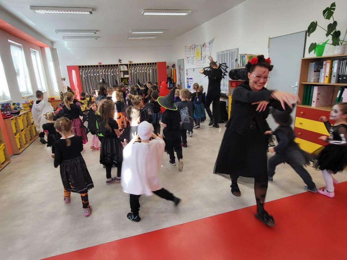 V úterý 4. listopadu proběhla u nás v mateřské škole Halloweenská párty s Romanem. Děti i paní učitelky oblékly různé a roztomile strašidelné kostýmy a masky (přiletěly ježibaby a ježidědci, po třídě lítali duchové, kostlivci chrastili kostmi, oranžové dýně cenily své zuby...). Roman si pro děti připravil spoustu dovádivých dětských písniček a zajímavé soutěže. Všichni jsme si strašidelné dovádění moc užili!!