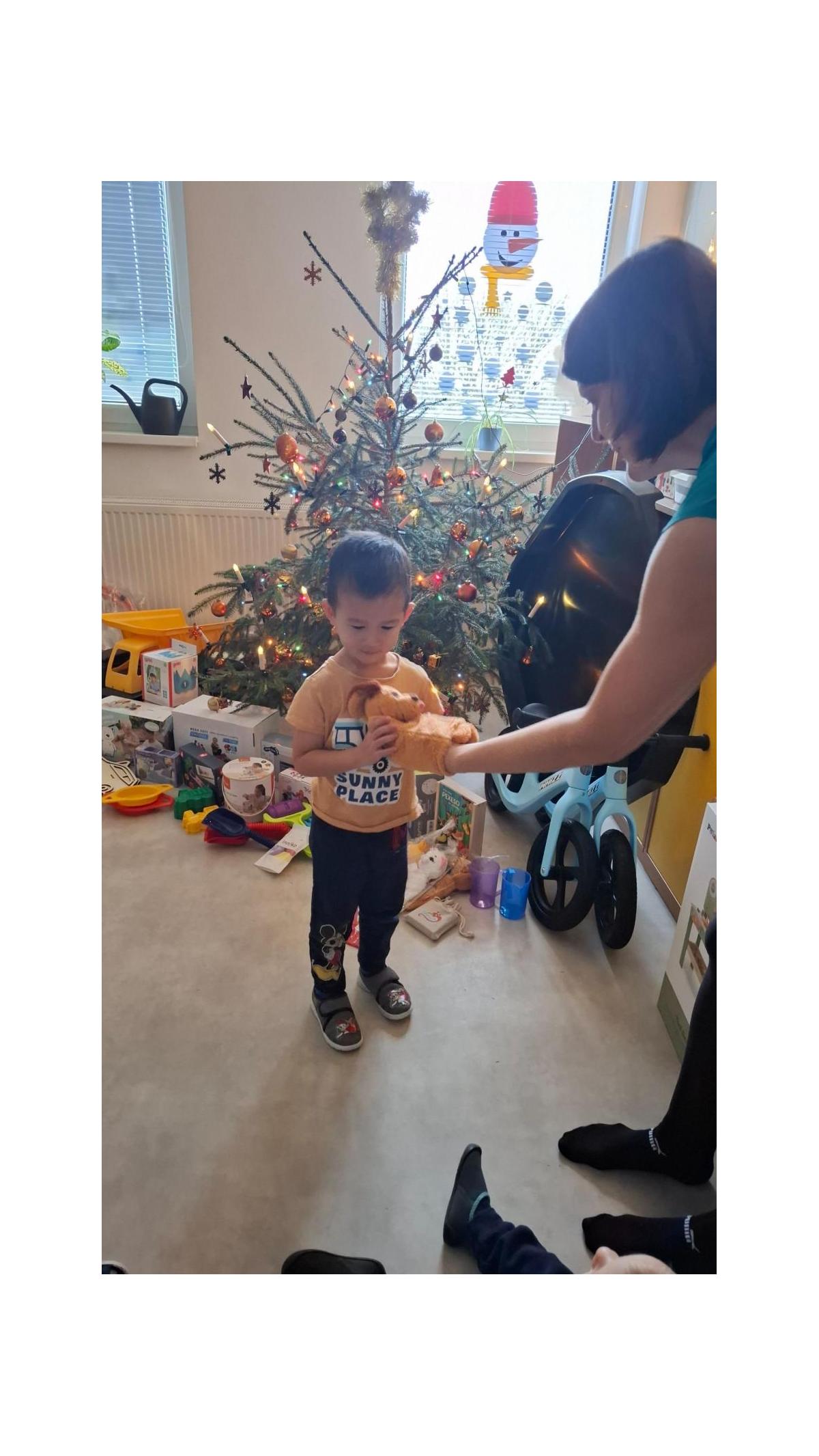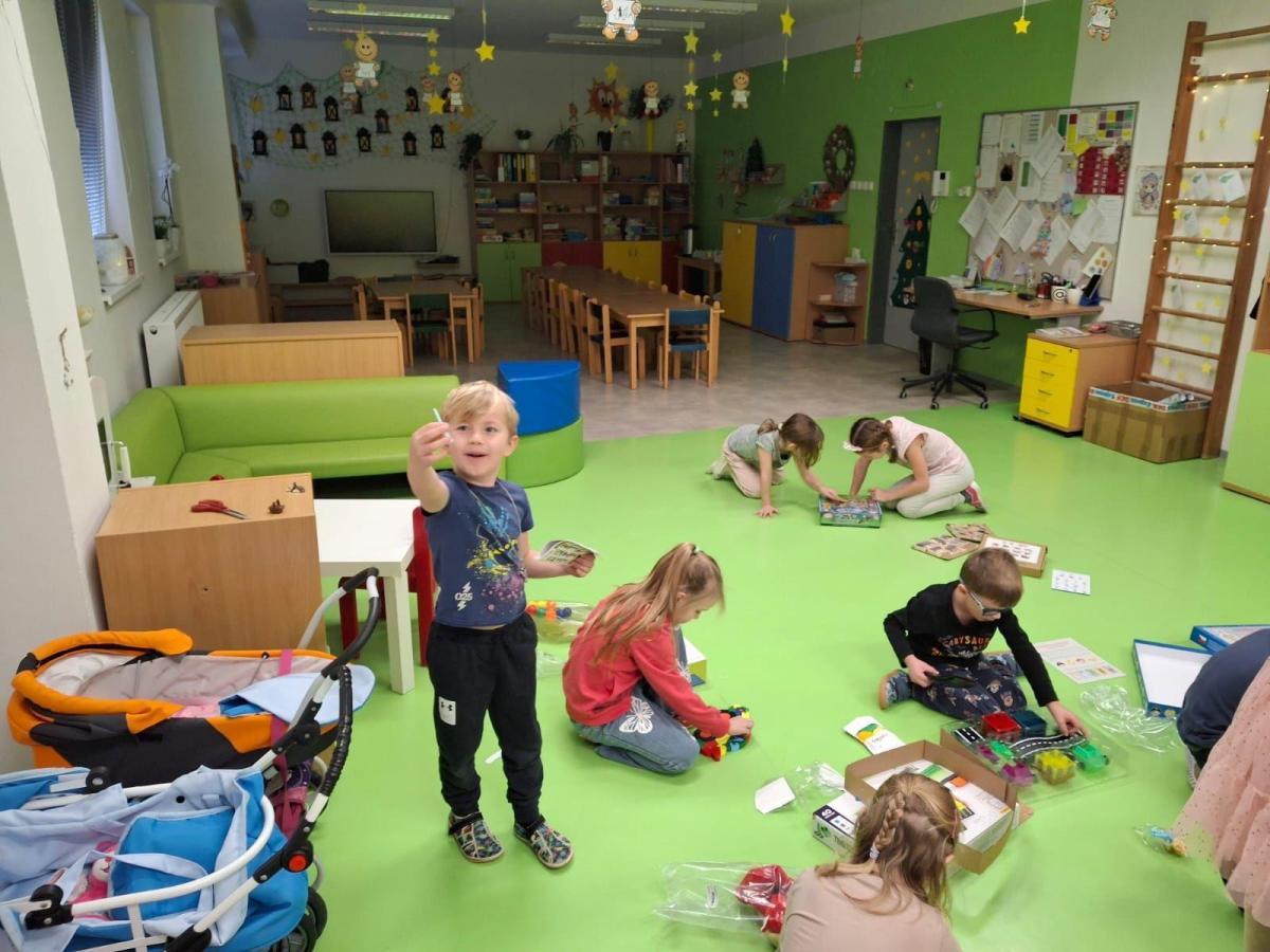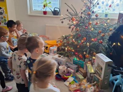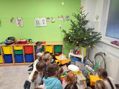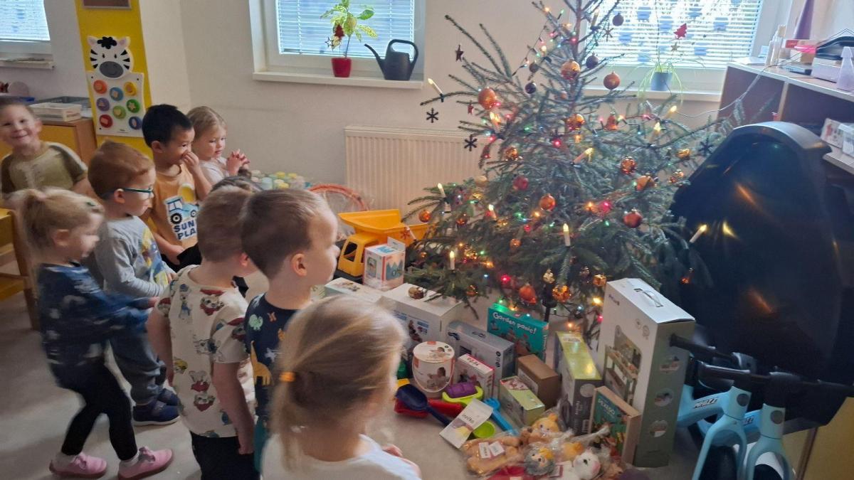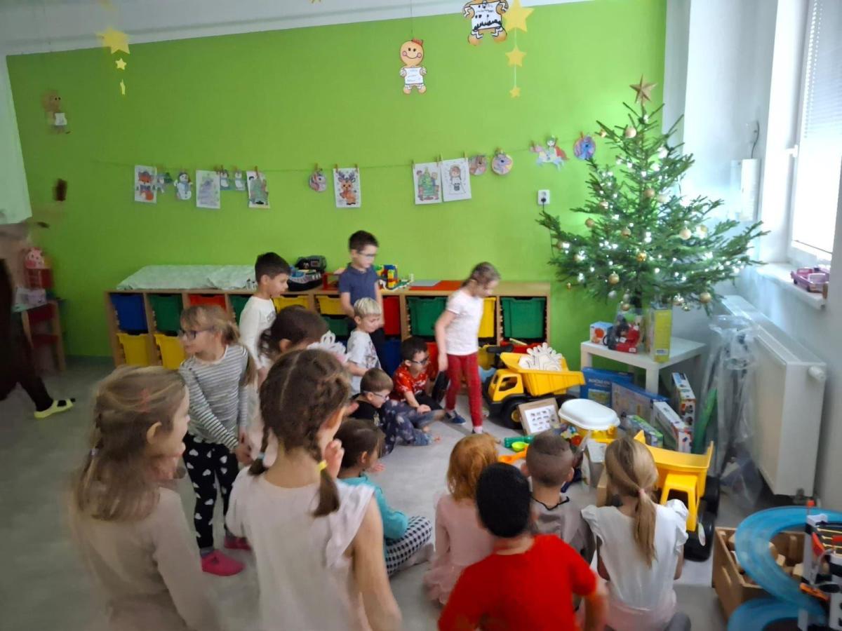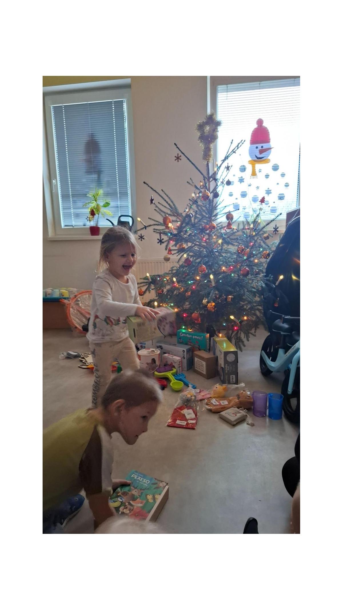 A pak to přišlo....zazvonění, které všem napovědělo, že Ježíšek už tu byl. Pod vánočními stromečky se objevily spousty krásných dárků. Děti s radostí a zvědavostí rozbalovaly nové hračky, stavebnice, autíčka, panenky i knížky, které hned vyzkoušely při společné hře. Radost byla znát na každém kroku.