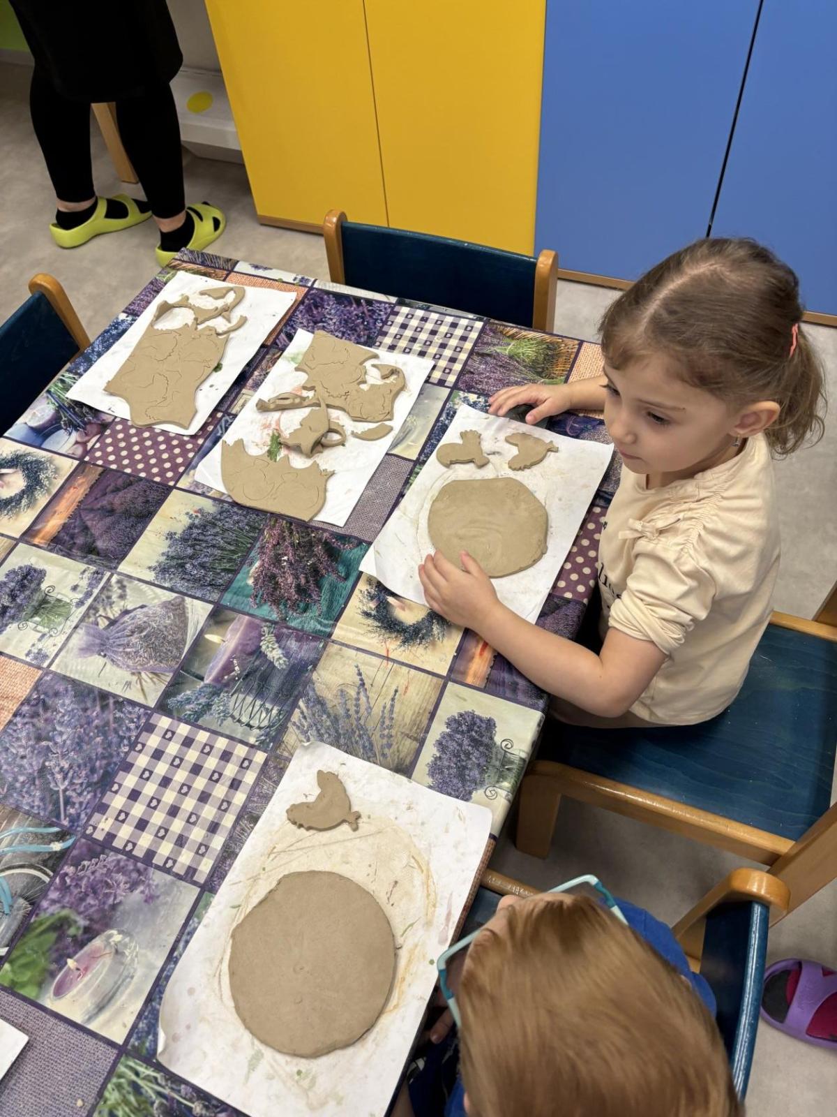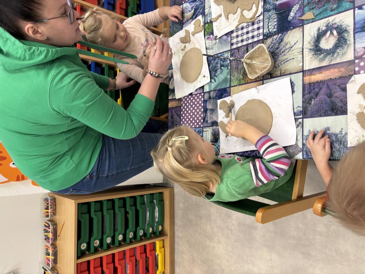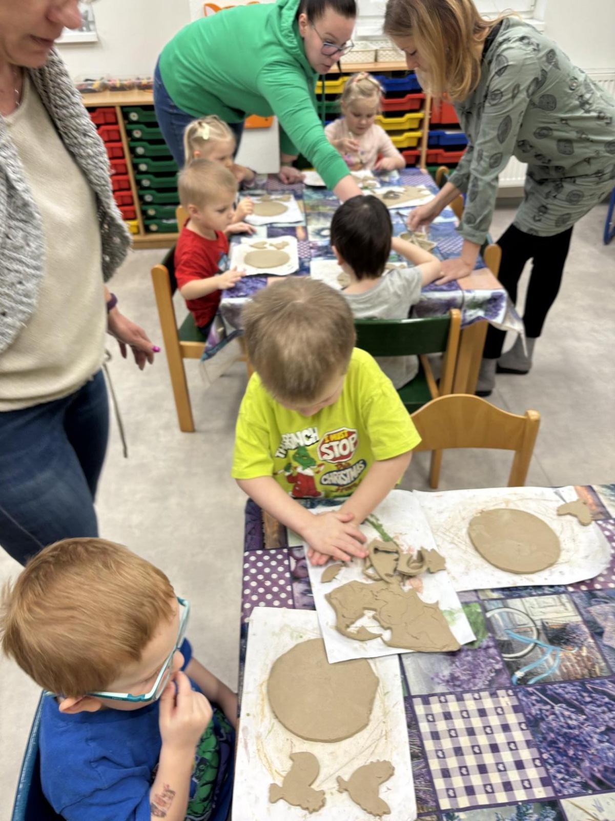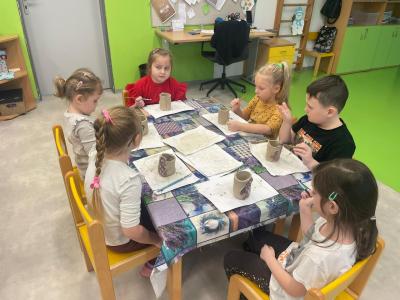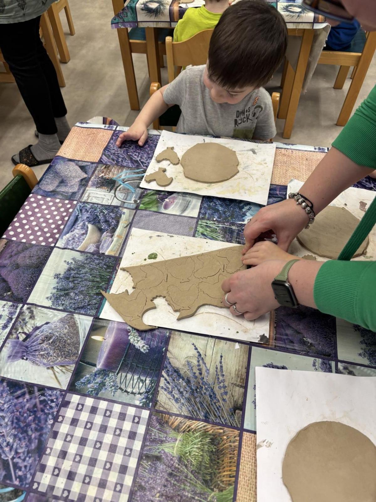 Děti se nebály ptát a paní keramička jim ochotně odpovídala na všechny jejich zvídavé otázky. Poté si samy vyzkoušely různé techniky práce s hlínou při výrobě jarního velikonočního překvapení, které si odnesou domů jako milou památku.