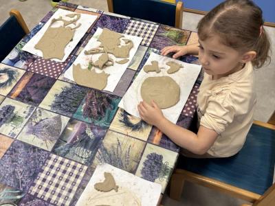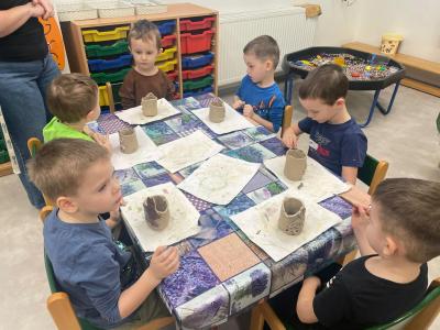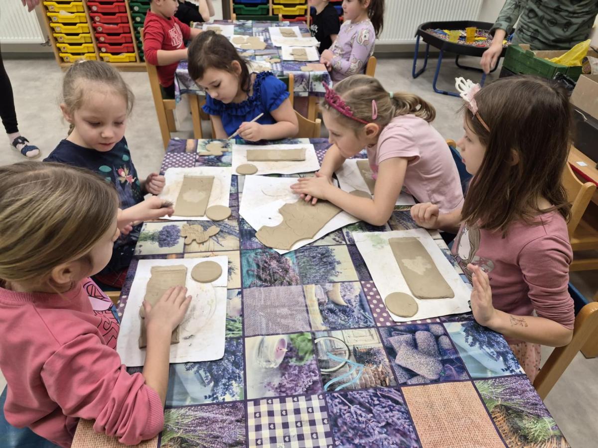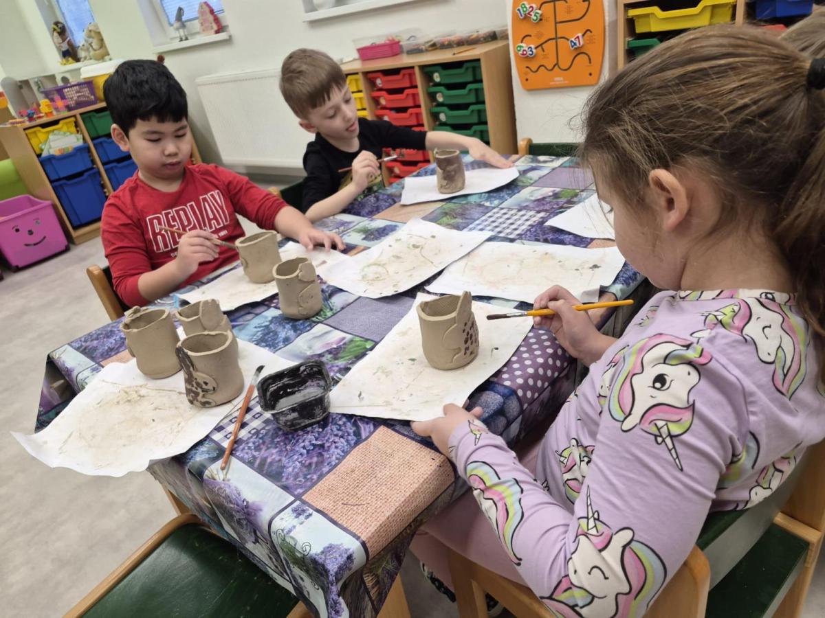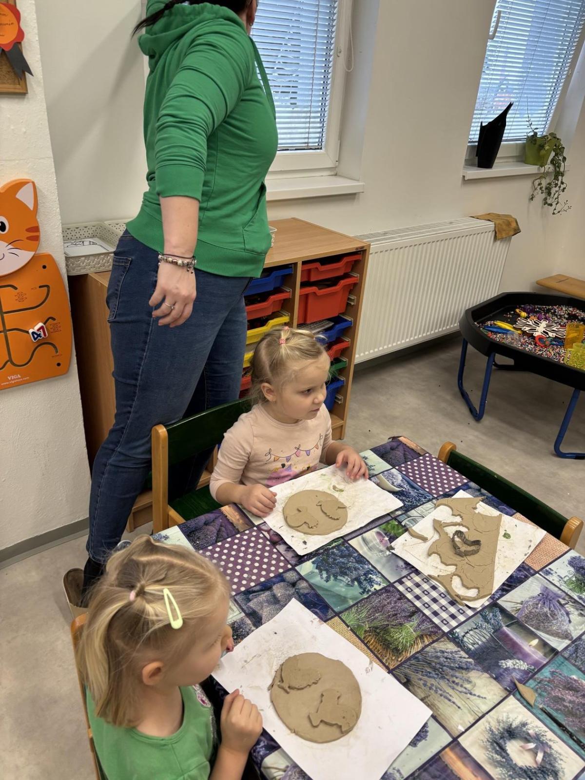 Děti se nejprve seznámily s keramickou hlínou všemi smysly – mohly si ji osahat, pohladit, pomačkat i očichat. Paní keramička jim jednoduše a srozumitelně vysvětlila, co je keramická hlína, jak se s ní pracuje a co všechno se z ní dá vytvořit. Zajímavé bylo i vyprávění o vypalování v peci, jak dlouho celý proces trvá a na jak vysokou teplotu se výrobky vypalují.
