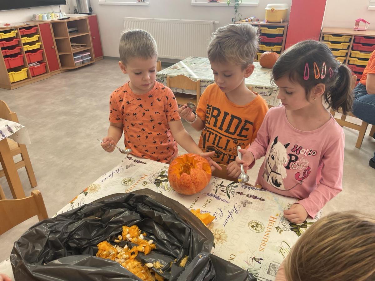 Během dopoledne jsme s dětmi hráli různé hry, při kterých jsme soutěžili, sportovali, a také se hodně nasmáli. Nechyběla ani kreativní část – dlabání dýní, které nás moc bavilo. Každý mohl ukázat svou fantazii a vzniklo mnoho povedených výtvorů.
